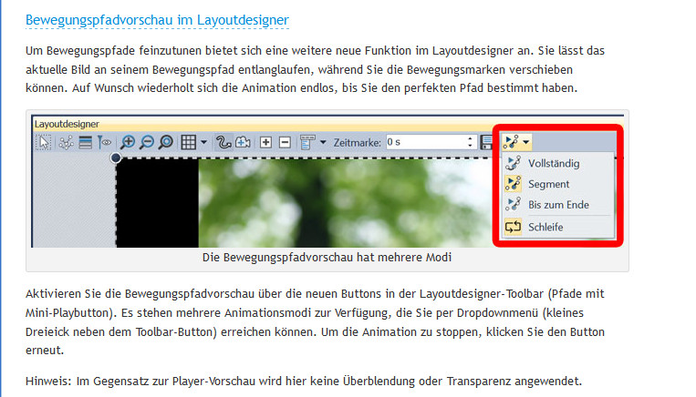 Die Bewegungsvorschau ist voll funktionsfähig und eigentlich einfach zu bedienen