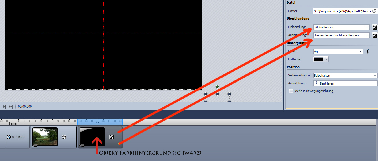 Als letztes Bild einen schwarzen Hintergrund einfügen und wie folgt einstellen: