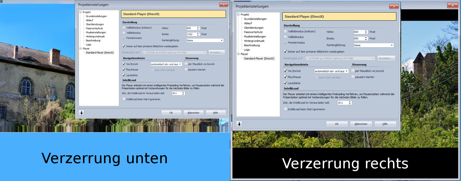 wenn ich heute den Fenstermodus verwende so habe ich bei der voreingestellten Höhe 600 x Breite 800 eine Verzerrung