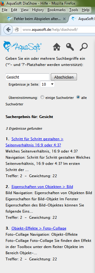 Nein, wir laden da alle die gleiche Version herunter. Die Funktionsweise dieser Art der Hilfe können wir auch gar nicht beeinflussen, diese wird von der Windows-HTMLHelp kontrolliert. Ein Doppelklick auf Gesichtserkennung öffnet das Fenster mit den entsprechend indizierten Fundstellen.