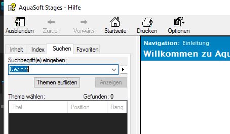 ich weiß ja nicht, wie Sie an die Hilfe gelangen, ich komme dahin über den Menü-Punkt Hilfe | Stages-Hilfe. Und dann erscheint das, wenn ich "Gesicht" bei "Suche" eingebe: