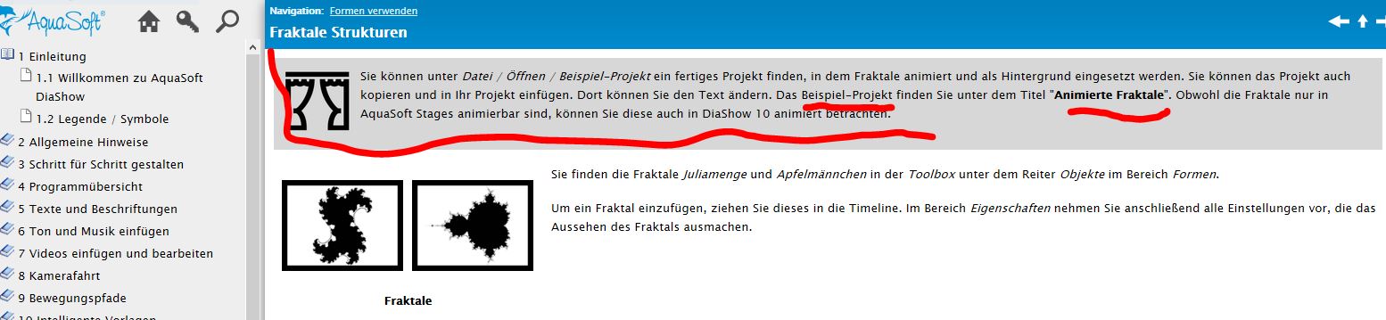 Mittlerweile sollte das Beispielprojekt "Animierte Fraktale" auch bei den Beispielprojekten auftauchen,