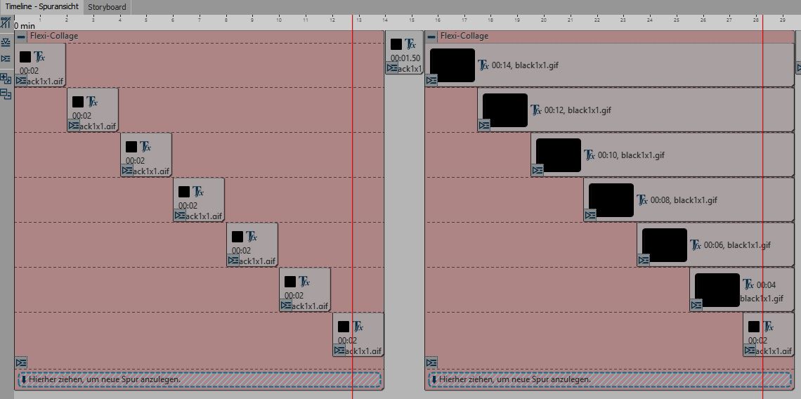 Ich haben bei mir die Bilder 2 und 4 nun auch um ca. 4 s eingekürzt. Sie fallen wir erwartet in die Spur Null zurück. Nach der Transparenzausblendung der Flexi-Collage liegen sie auf dem Bild der Spur 2 (Deine Zählweise). Also alles wie erwartet.