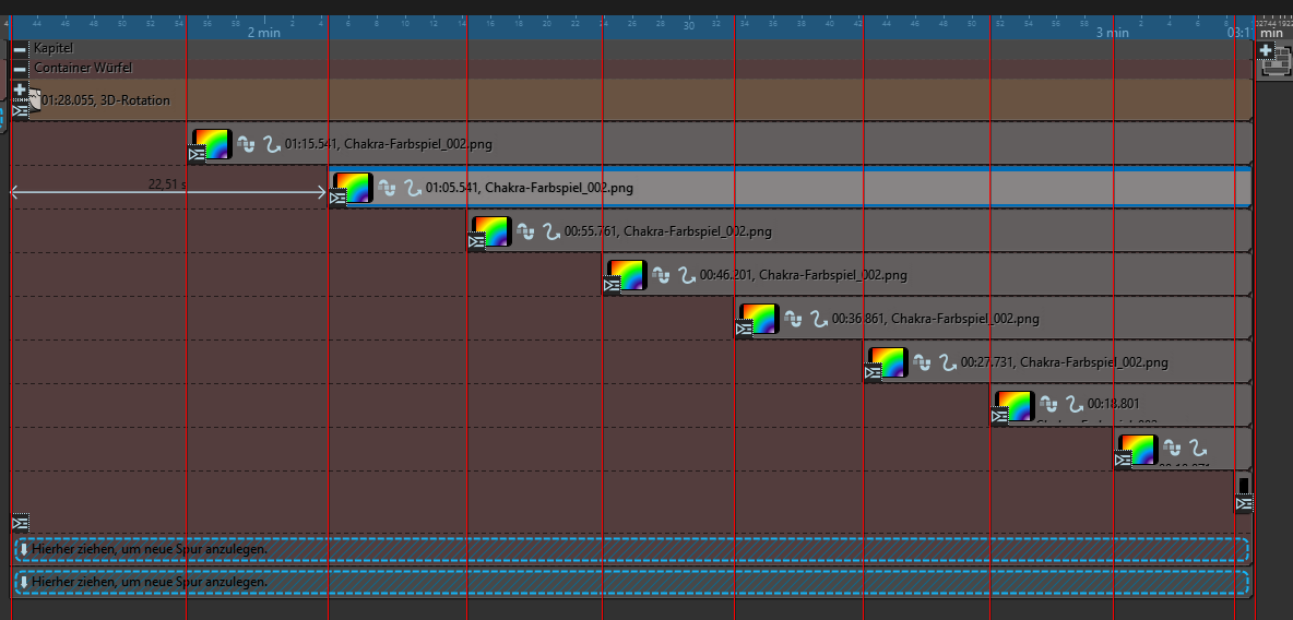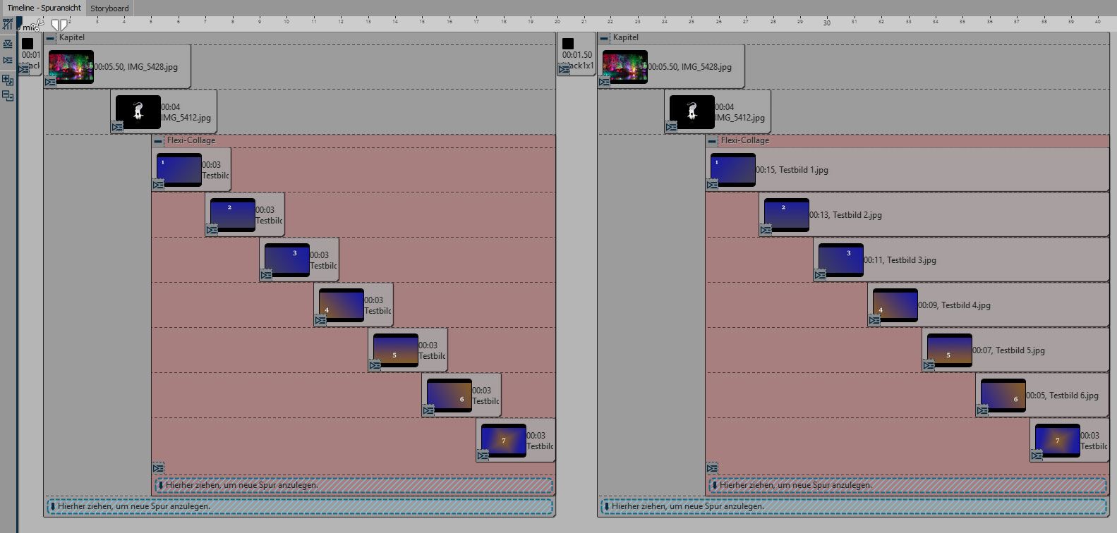 aus Spur 2 mit angezeigt. Verlängere ich im Kapitel 2 die Dauer des Bildes aus Spur 1 (buntes Bild), so wird dieses (statt des Bildes