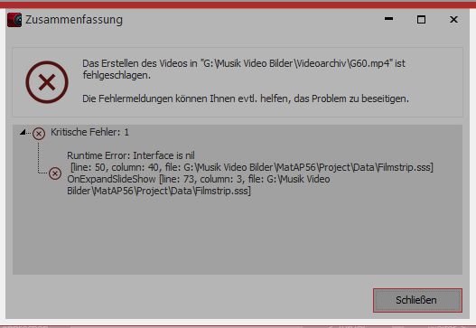 Hallo, nachdem längere Zeit "alles gut" war, taucht beim Erstellen mp4 der bekannte Fehler (Oktober) wieder auf ... das Video kann also nicht erstellt werden.