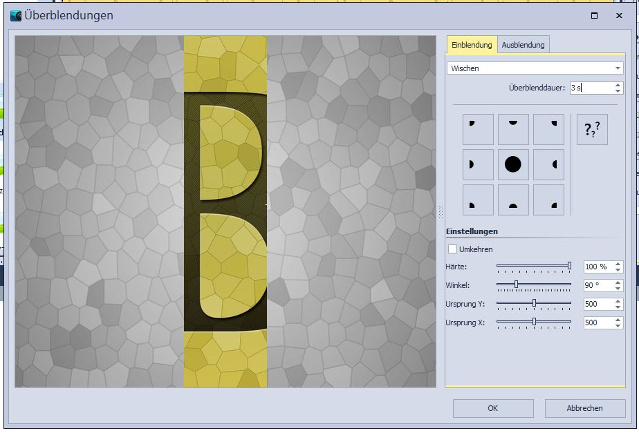 wenn man für die Bauchbinde ein Bildobjekt mit der genannten"Wischen"-Überblendung verwendet