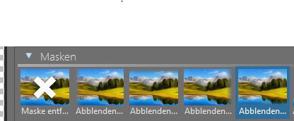 Die Version zeigt viele Verbesserungen im User Interface. So finde ich z.B. die Punkte zur Anzeige der Verschachtelung im Titel von Flexi-Collagen und Kapitel sehr nützlich. Was mir aber nicht gefällt, sind die Ersetzung der Texte durch Icons in einigen Menüs, z.B. Auswahl der Ein-/Ausblendung im Eigenschaftsfenster oder einer Maske in Fenster Bildbearbeitung. Das die Icons natürlich mehr Platz einnehmen als die Texte bedeutet dieses langes Scrollen! Zudem helfen die Icons meist nicht viel, da sie nicht so eindeutig sind (und m.E. auch nicht sein können), dass ich den Text nicht ohnehin lesen muss. Oder wer kann aus dem folgenden Icon sofort erkennen, welche Blende es repräsentiert?