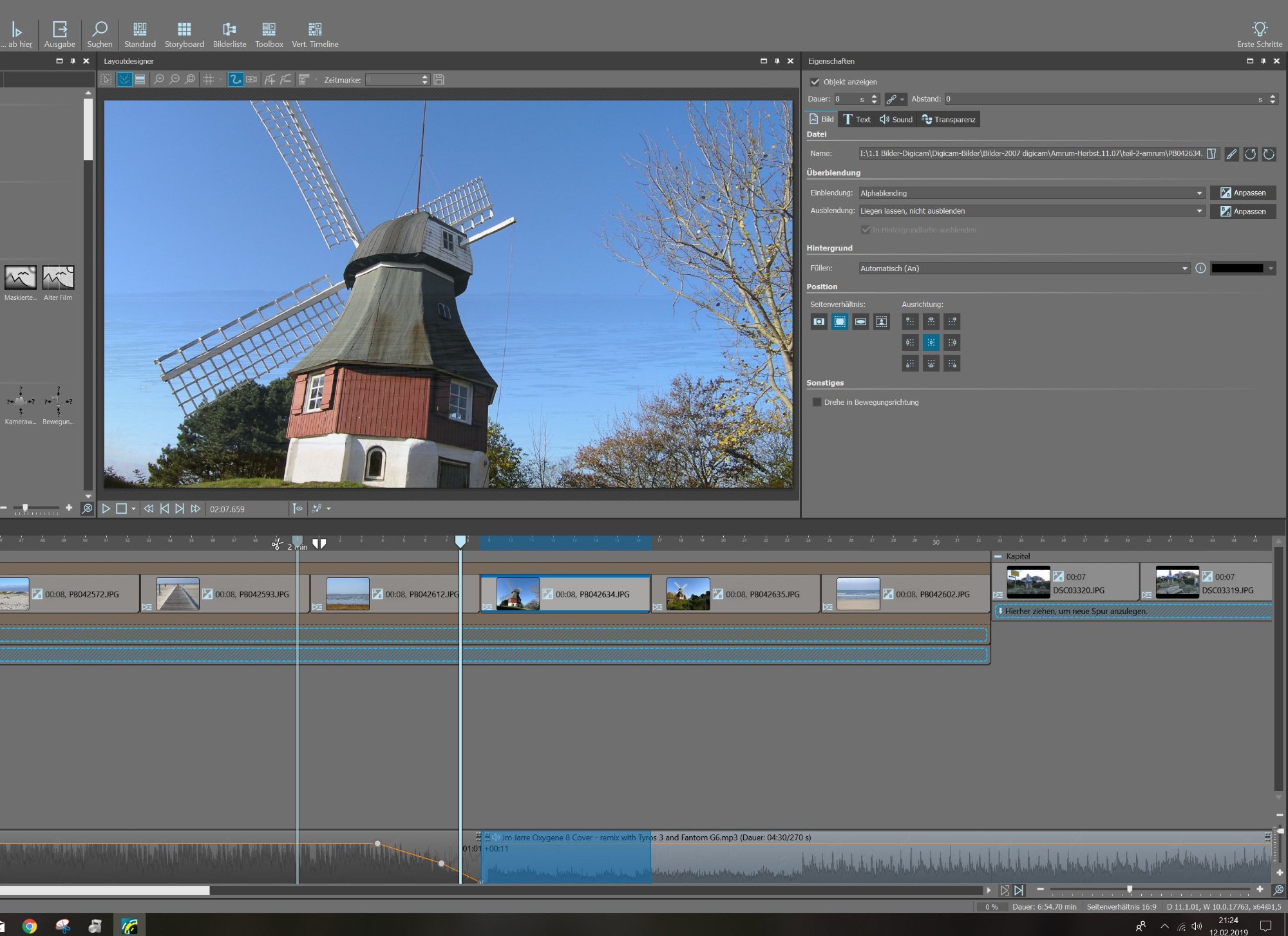 Bei der Nutzung dieses Objekt-Effekts musst Du in Spuren unterhalb des Effekts und entsprechend natürlich auch bei der Hintergrundmusik die Überlappungsdauer berücksichtigen, d.h. die Musik entsprechend früher starten lassen.
