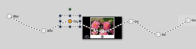 "Zeichnen Sie durch hinzufügen von Bewegungsmarken einen Pfad, ähnlich dem im obenstehenden Screenshot. An diesem Pfad werden dann später ihre Bilder „aufgefädelt“ angezeigt. Achten Sie auf ausreichen Abstand zwischen den Marken, damit sich die Bilder später nicht überlappen. "