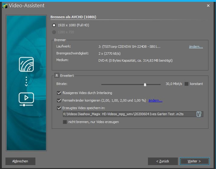 Zum Brennen der DVDs nutze ich Stages 11 (Ausgabe/Brennen/AVCHD).