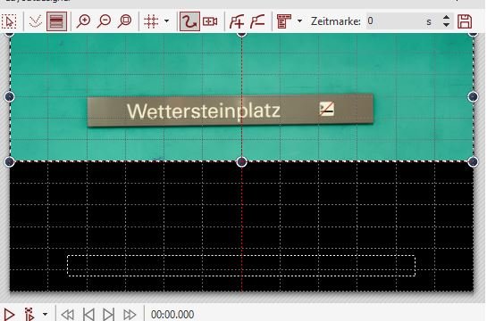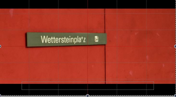 Ich bin bei einer Diashow im 16:9 Format, bei der nur das erste und letzte Bild im 21:9 Format zu sehen sein sollen. Alle Bilder, ausser dem letzten, sind gespiegelt. Beim ersten Bild, in einer U-Bahnhaltestelle aufgenommen, nähern sich die beiden Hälften über einen Kameraschwenk an, bis sich die Stationsschilder in der Mitte treffen.