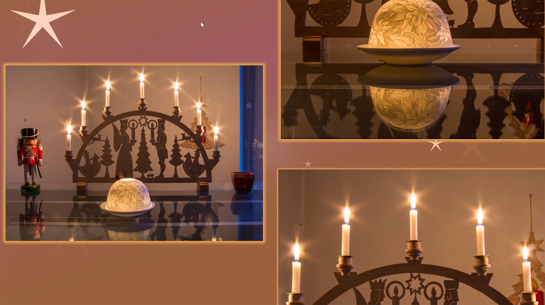 P.S. hier noch mal das Beispiel im Bild. Bei allen Bildern ist der Bildeffekt Glühen mit Abstand 0,5 eingestellt. Im Bild links und rechts oben wird er richtig dargestellt im DS-Ablauf, rechts unten falsch wobei die Bilder auf der rechten Seite mit Bewegungspfad durchlaufen.