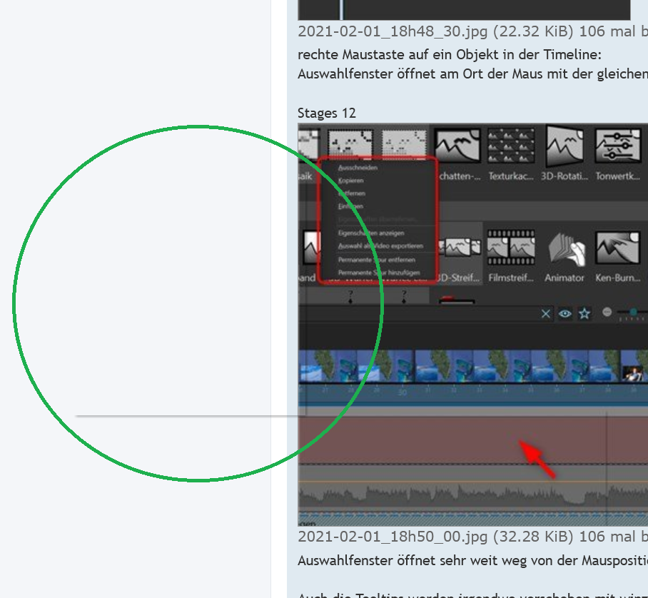 Alles gut, fast alles, denn wechsel ich jetzt jedoch das Programm, z.B. hier in den Browser in die Forumsansicht (das Diashowprogramm ist im Hintergrund weiter geöffnet), so schlägt der Rahmen des geöffneten Untermenüs aus dem Diashowprogramm durch, ist praktisch in jeder geöffneten Anwendung sichtbar. Hier einmal grün umrandet: