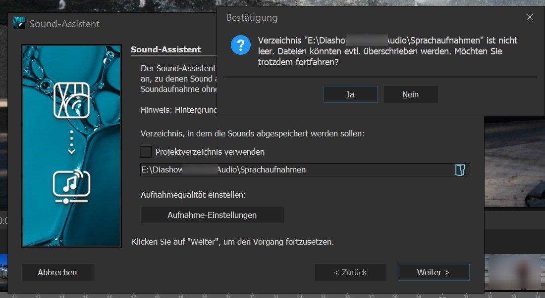 Ich hab für die Dateien der Soundaufnahme einen eigenen Ordner in den diese gespeichert werden sollen.