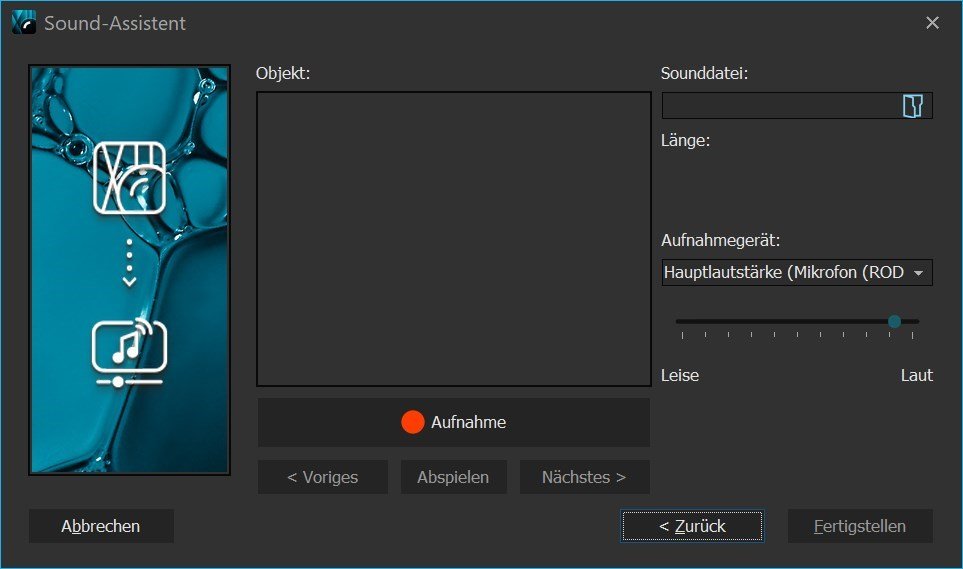 vom Soundaufnahme Objekt direkt mit dem Aufnahmefenster startet?