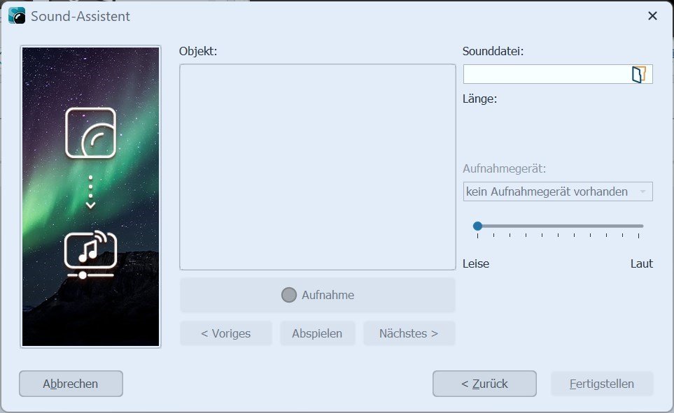 Aber wenn man das Soundaufnahmeobjekt schon ausgewählt hat, hat man das ja normalerweise ganz bewusst gemacht,