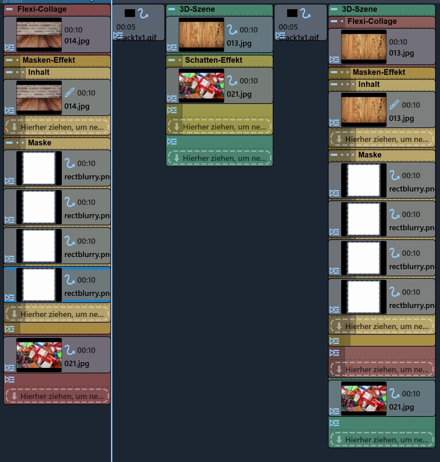 Für andere Bewegungen der Lichtquelle oder des Schatten erzeugenden Objektes sind natürlich die Rechtecke des Maskeneffekts anzupassen.