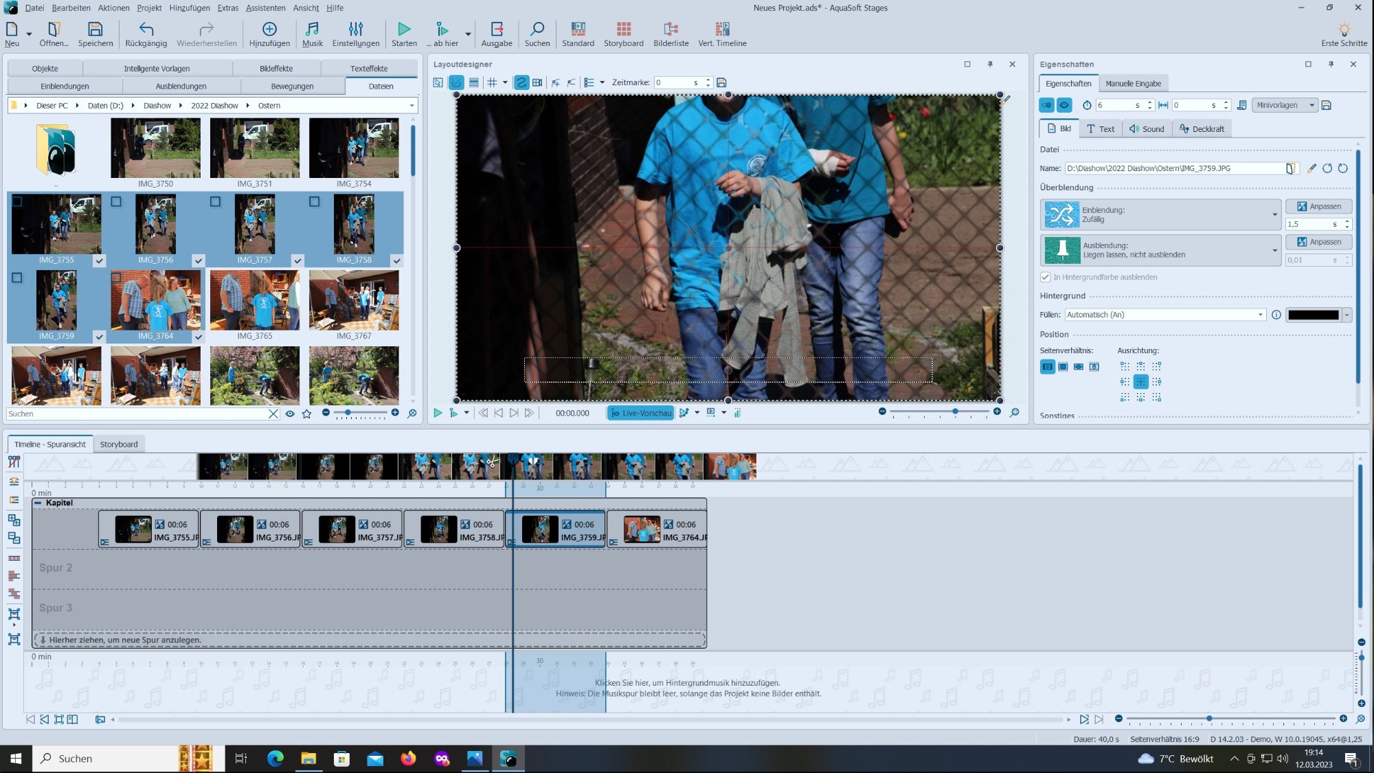 Ich füge meistens alle Bilder, die ich haben will, in die Kapitel ein, gehe auf Seitenverhältnis "Zuschneiden". Wenn ich dann die "Hochkantbilder" wieder auf "Beibehalten" umstelle, sehe ich auf den einzelnen Bildern und in der Livevorschau das richtige Format, lasse ich die Vorschau laufen ist es im Format zuschneiden.