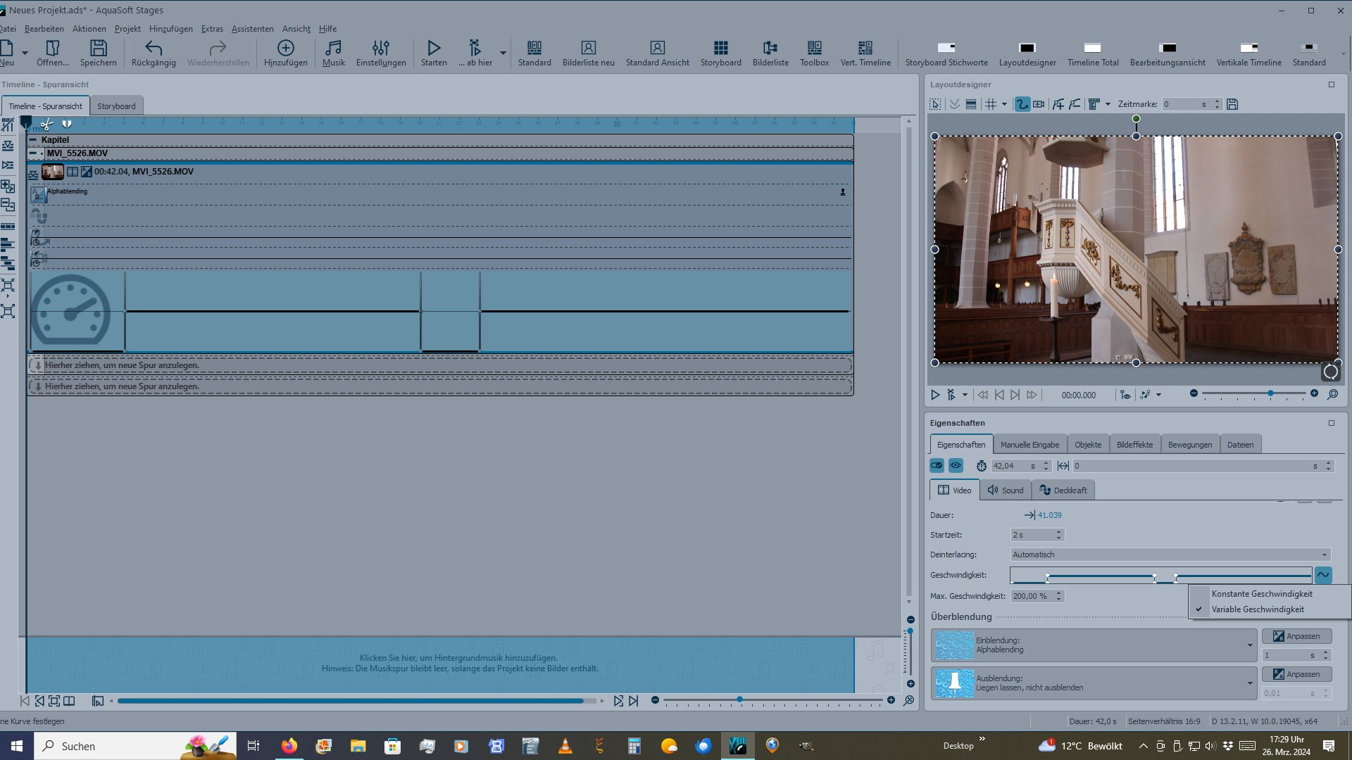 ich nehme für das Video die "Variable Geschwindigkeit"