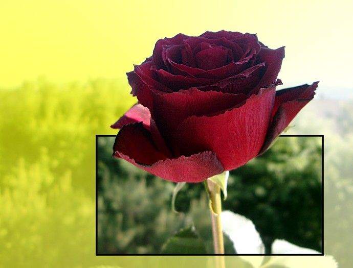 Allerdings habe ich den Hintergrund nicht ganz verschwinden lassen. Dabei sollte die Rose aus einem gesprungenen Glas heraus wachsen (Variante 1), leider ohne befriedigende Lösung. Darum gibts noch die gelbe Variante 2.