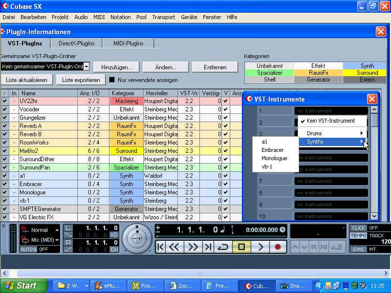 Wie bekomme ich alle Plug-INs die unter Plugin-Informationen aufgeführt sind in die F11 VST-Instrumente "Box"?