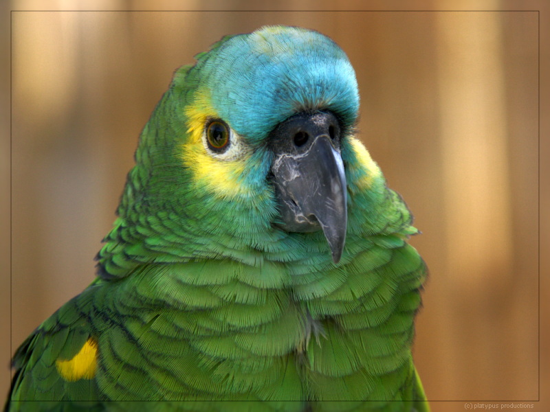 Dort entstanden das Bild von der Blaustirnamazone und dem Kronenkranich.