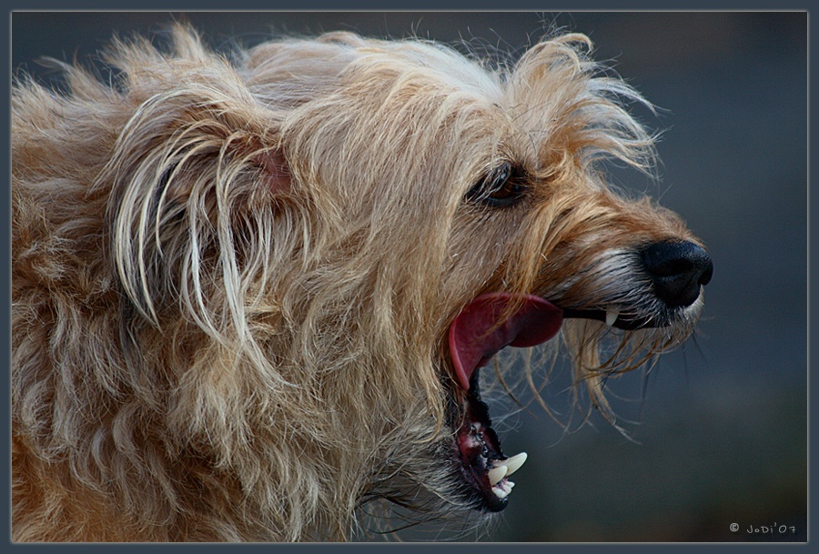 Nori unser Nachbarshund. Recht ängstlich der Kurze, aber doch ganz lieb. Habe ihn heute Nachmittag beim Gähnen erwischt