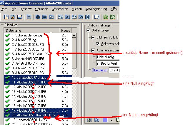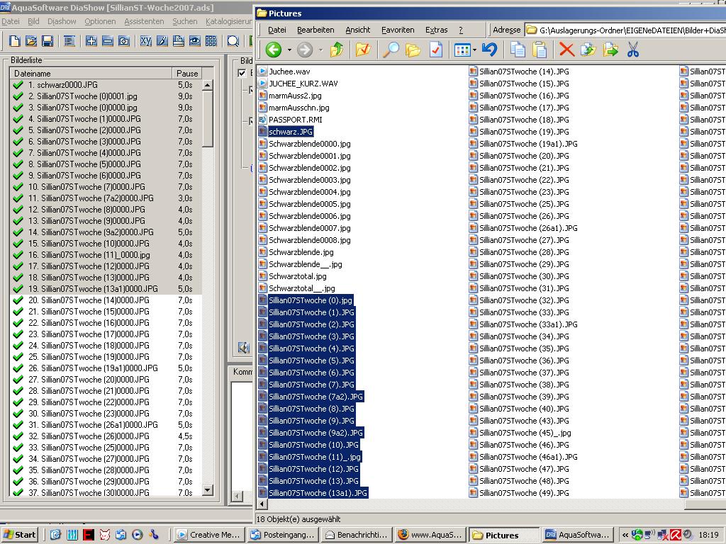 Habe noch mal ein Screenshot von (links) der DS-Bilderliste und rechts den entspr. Dateien im unveränderten Dateinamen-Zustand aus dem Picturesordner der CD angefügt. Eine Gruppe von ca. 18 Bilddateien hab ich stellvertretend für die Masse ge-"highlighted".
