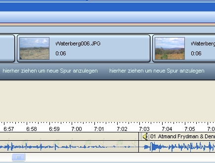Habe die 6.05 Demo heute runtergeladen und war gespannt ob sich was geändert hat. Die Gesamtlänge der Diashow wird korrekt angezeigt, aber die Timline kann nicht stimmen. Laut Timeline fängt die HGM ein neues Stück bei 7.03 an, lass ich es aber abspielen (ab hier) in meinem Fall Waterberg06 läuft das neue Stück der HGM schon längst. Es fängt sogar einige Bilder vorher an. Irgendwie kann die angezeigte Dauer der Bilder nicht stimmen oder aber die Anzeige der HGM stimmt nicht. Kann den Fehler nicht finden. Hängt aber eventuell an den Sounds, siehe auch Diverse Beiträge zu Sounds. Habe leider die History nicht gefunden inwieweit die gemeldeten Fehler behoben sind. So ist die 6er leider noch nicht zu gebrauchen, zumindest um alte, bzw. angefangene Shows weiterzubearbeiten.