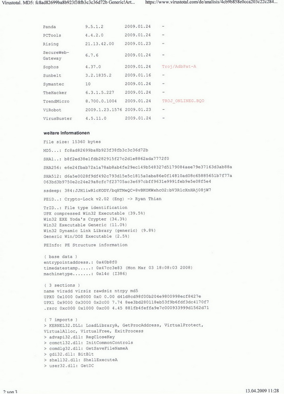 Hier das Ergebnis. AS versendet Viren verseuchte Daten? Ich kanns nicht glauben.