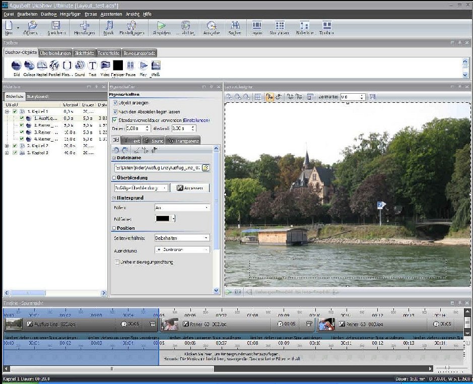 bei allen entsprechenden Vorgänger-Versionen hatte ich die Steuerelemente Toolbox (unter der Kopfleiste), Bilderliste (links drunter), Eigenschaften (rechts anschließend daneben), Layoutdesigner (rechts davon) und Timeline (darunter auf Bildschirmbreite) anordnen können. Das ergibt für mich die praktischste Ansicht der Arbeitsoberfläche. In der gestern gekauften Version 7.0.01 und in der heute aktualisierten 7.0.02 gelingt es mir aber nicht, die fünf genannten Elemente in der beschriebenen Weise zu platzieren. Das geht nur, wenn ich z.B. die Toolbox oder ein anderes der genannten Elemente weglasse. Sonst sprengt das jeweils fünfte immer ein anderes weg. Kann mir hier vielleicht jemand aufzeigen, wie alle fünf Elemente, am besten dazu auch noch als sechstes das Element Storyboard, zu einer ergonomisch sinnvollen Arbeitsoberfläche zusammengestellt werden könnten?