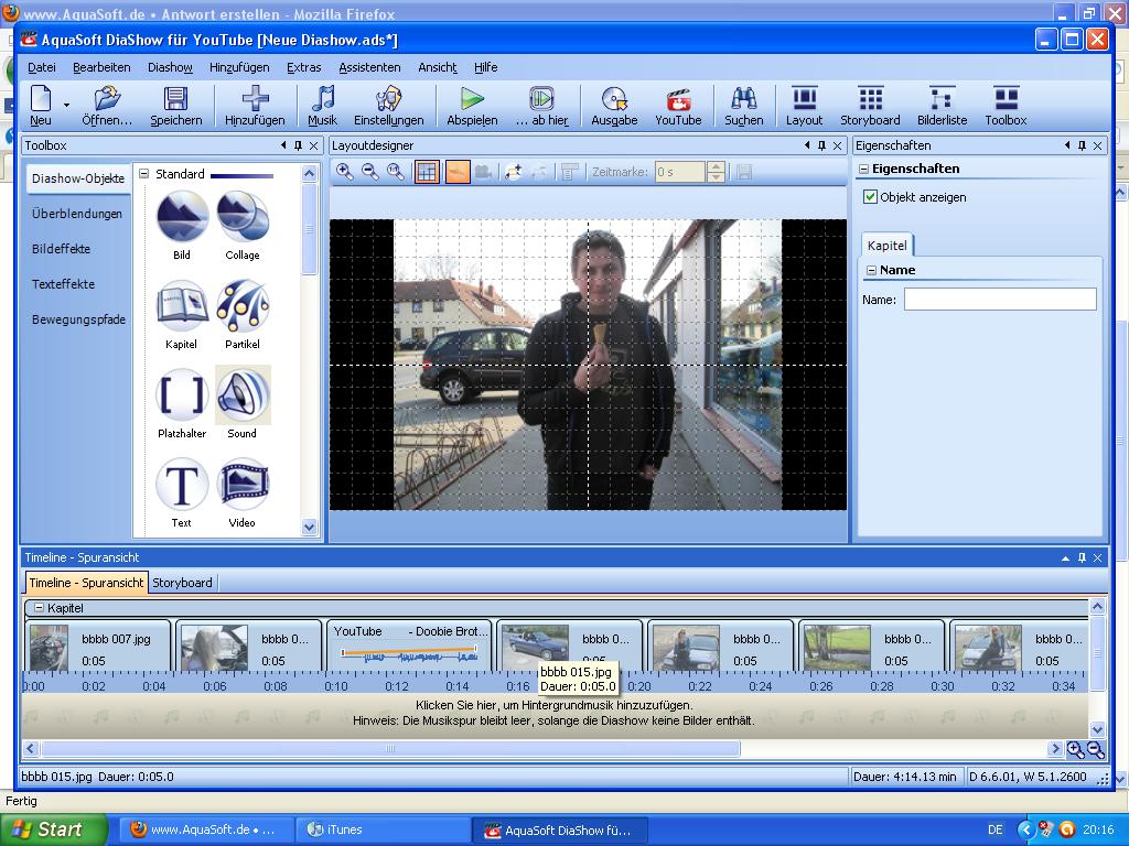 Ich bekomme es nicht hin die einzelnen Elemente zu positionieren? Er spielt immer den ganzen Song von 3,08 Min und dann kommen die Bilder? Wie kann man das verschieben, mit Kapitel habe ich es auch schon probiert es funzt einfach nicht.